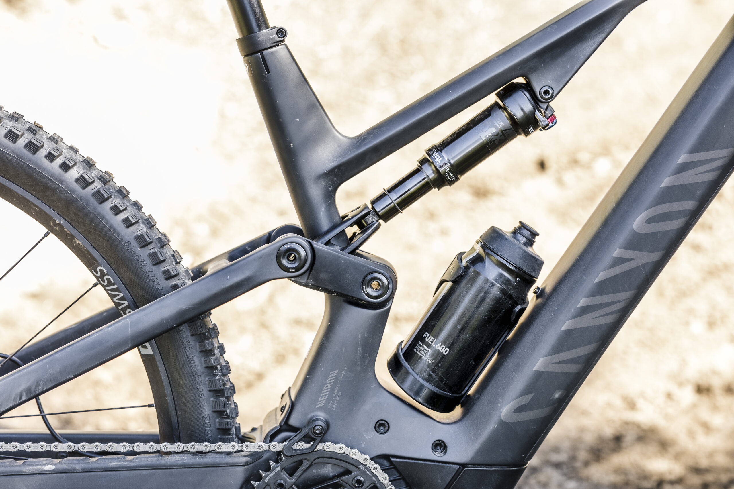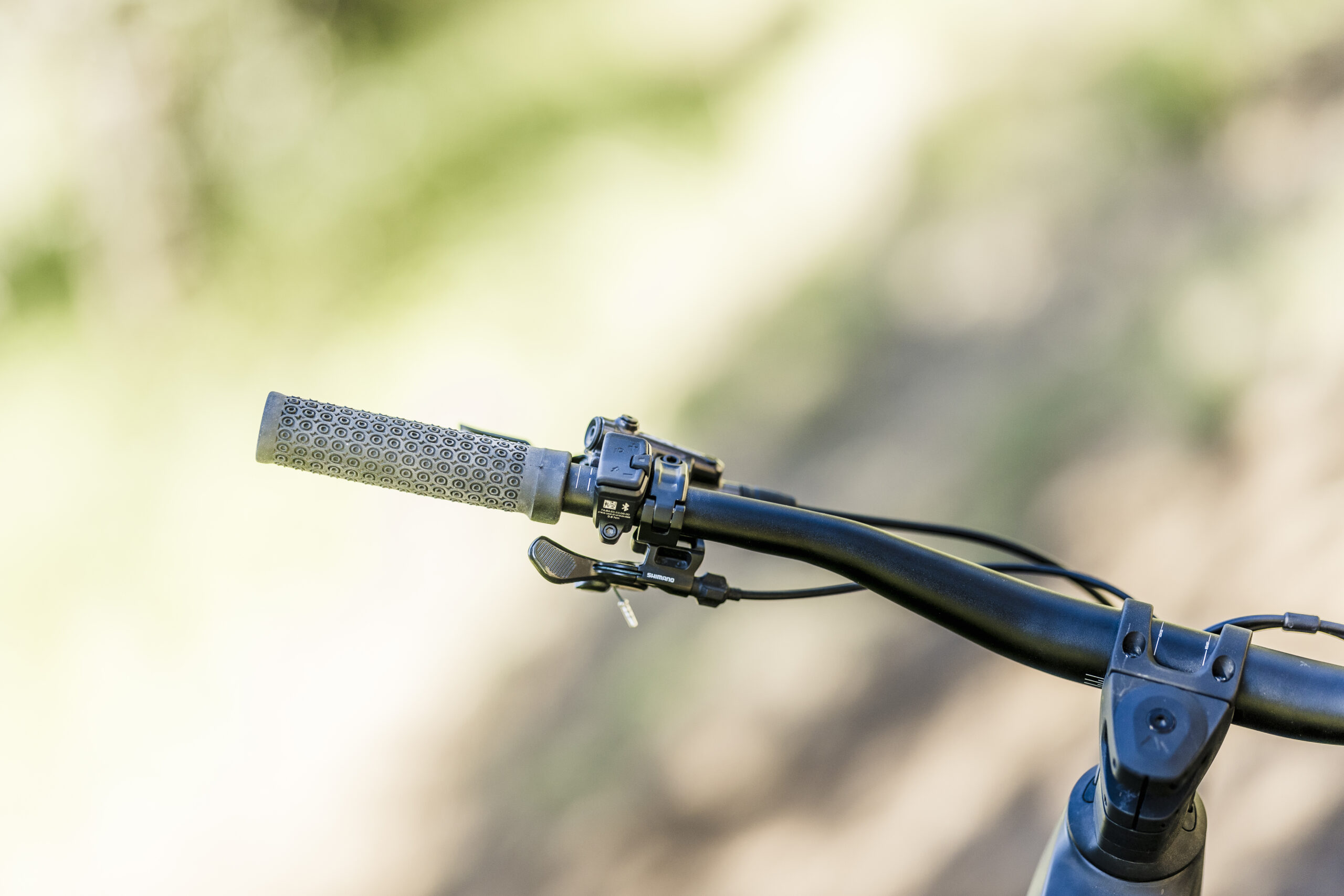 The Bosch motor in this instance was paired with a simple pair of buttons on the bars – and a light display on the top tube to tell you which mode you’re in, and how much battery you had left. I found these buttons easier to hit than on the more complex Bosch display with all the lights included – as featured on the Grand Canyon:ON, and also the Cannondale Moterra I tested previously. Perhaps though, a little too easy – they need just the barest of touches to shift modes, and I sometimes found myself catching one on the way to my dropper, or catching up on the way to down.