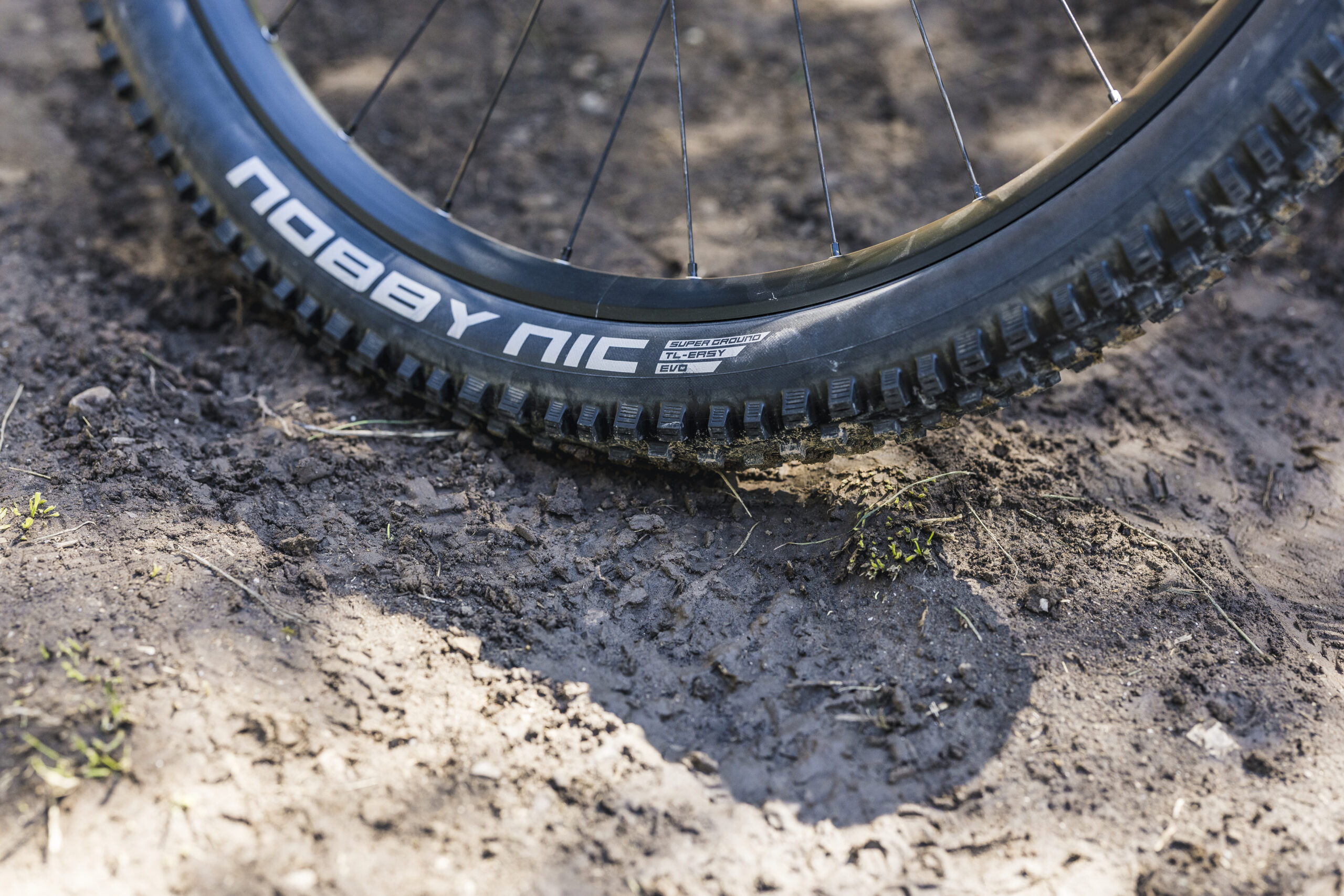Another thing I found to be a little on the light side was the Schwalbe tyres. I almost never get flats, yet here I – along with a few other journos – managed to lose all our air in a variety of side wall and tread tears and punctures. If you’re going to ride this bike hard, or in rocky areas, I’d suggest a rear tyre upgrade. For the test – which proved to be in rather unseasonably slithery conditions – the mechanics had also given us a grippier Big Betty front tyre than the Nobby Nic that will come as spec. I’d expect you to want to do the same if you live in the UK.