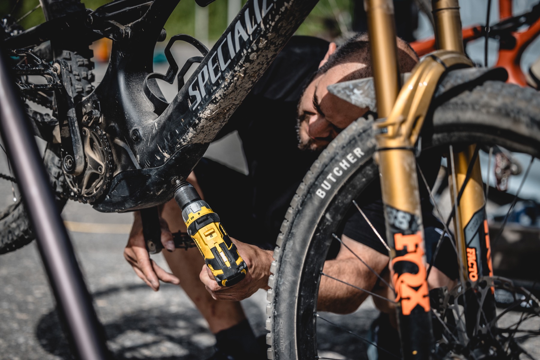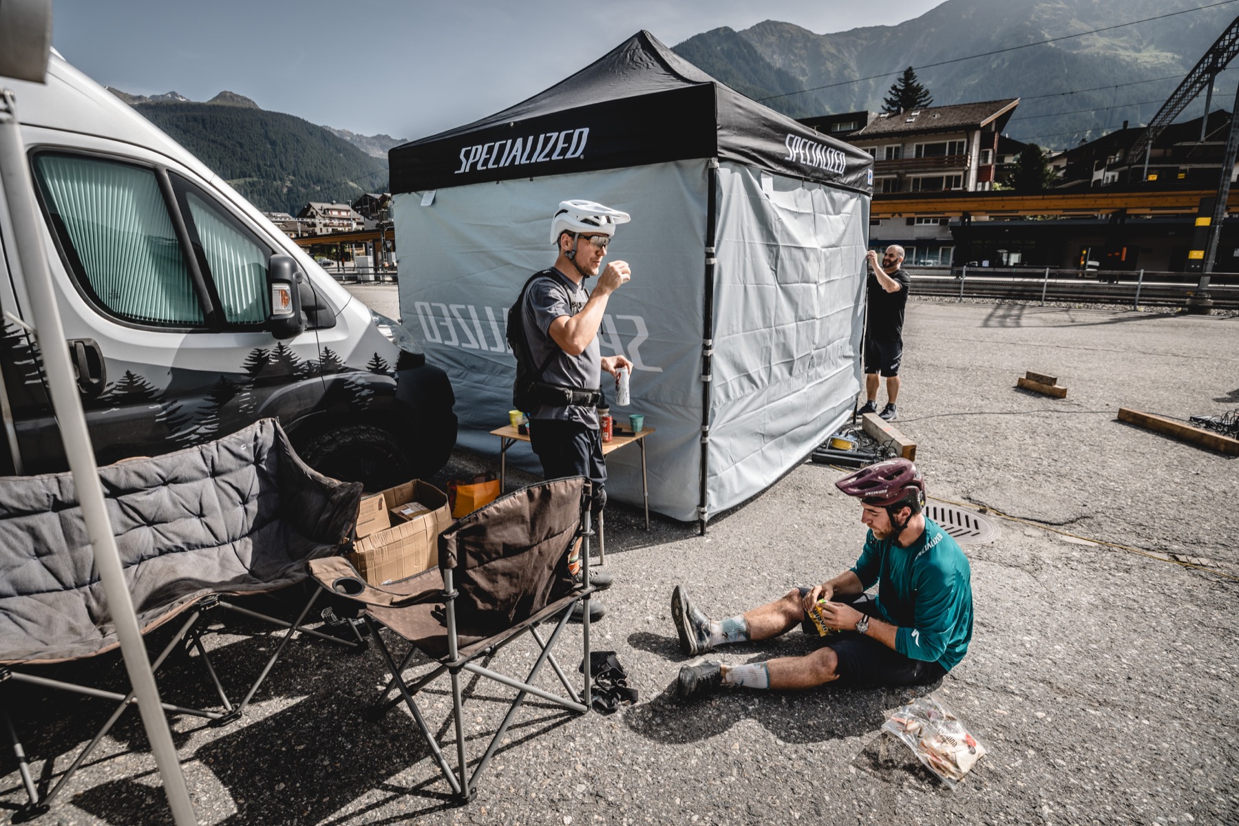 Returning to the world record: ‘We cycled the whole day on the same “Specialized Turbo Levo”. We were able to climb over 1,500 metres of altitude with a 700 Wh battery in power mode,’ says van den Berg. But they still needed proper battery planning. According to the rules, the service team was not permitted to accompany the cyclists as they went in pursuit of their world record. Instead, the team had to wait at a fixed location: down in Klosters at the Gotschnabahn. This was the only place where batteries could be replaced or repairs could be made. In addition, only commercially available electric mountain bikes using normal batteries and capped at 25 km/h were permitted for use in the world record attempt.