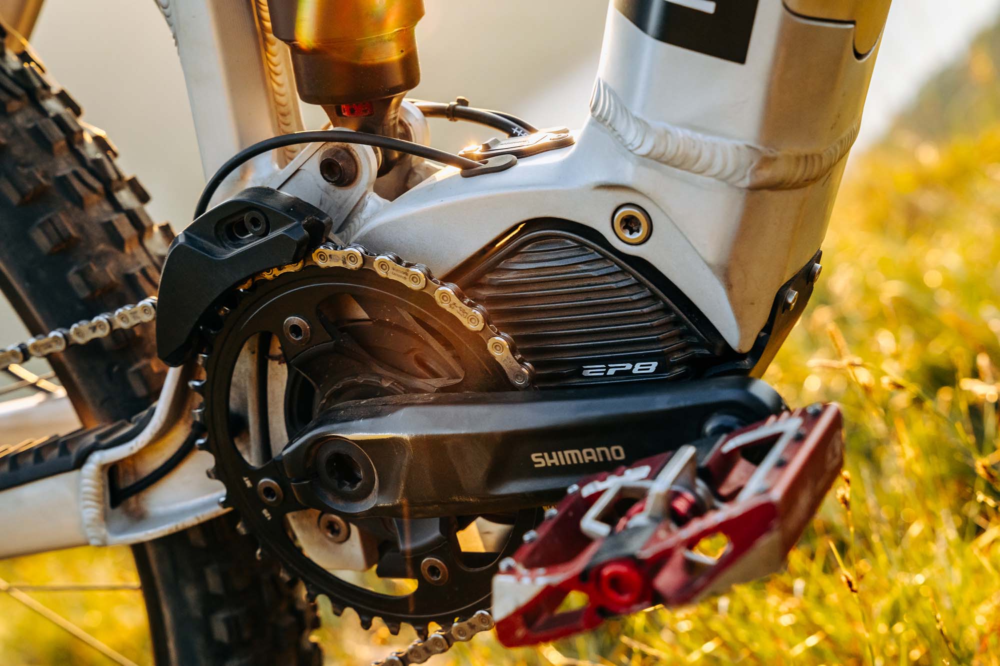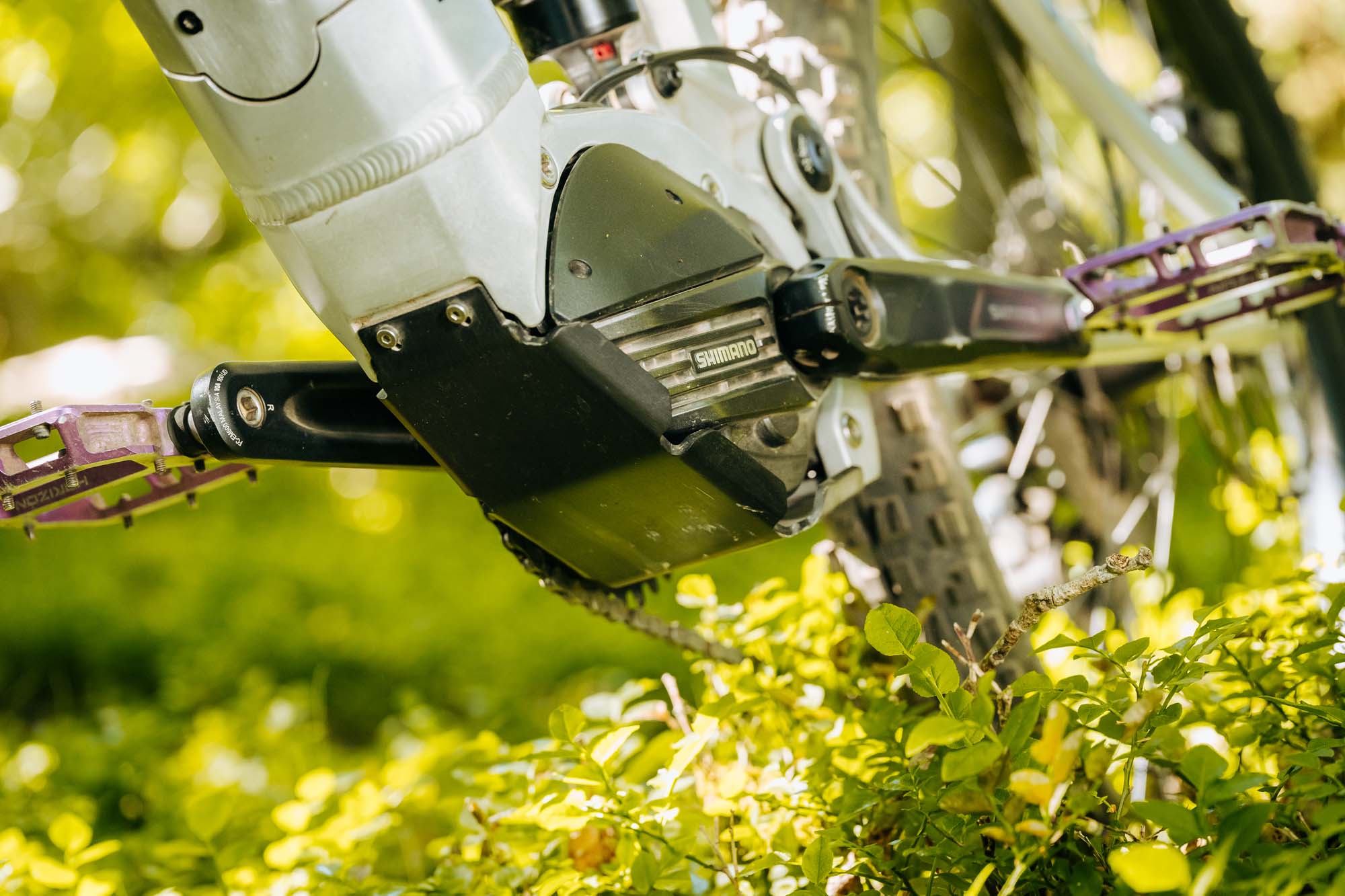 Protecting the Shimano EP801 motor is a custom-designed 4mm hard-anodised bashguard, offering riders peace of mind when pushing their limits. This specially designed bashguard, is manufactured in the UK and protects the Shimano EP801 motor system, so riders can fully enjoy their ride without worrying about damage caused by accidents or impacts.