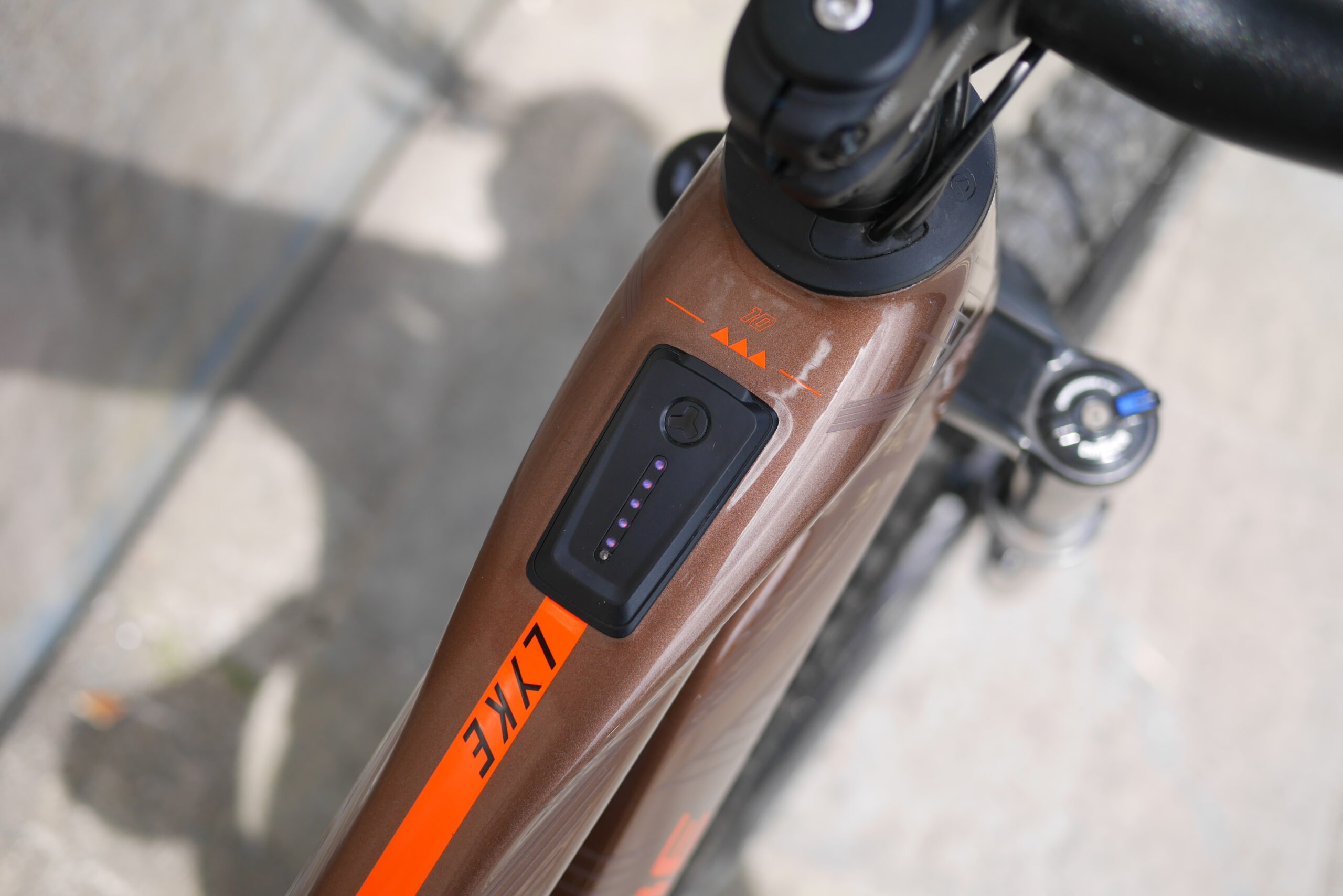 The control is the frankly flimsy-feeling ‘Ring Control’ remote near the left hand grip. And the display, such that it has one, is built into the top tube and solely displays what mode you’re in (via colour coding) and what battery life you have remaining (in five LEDs).