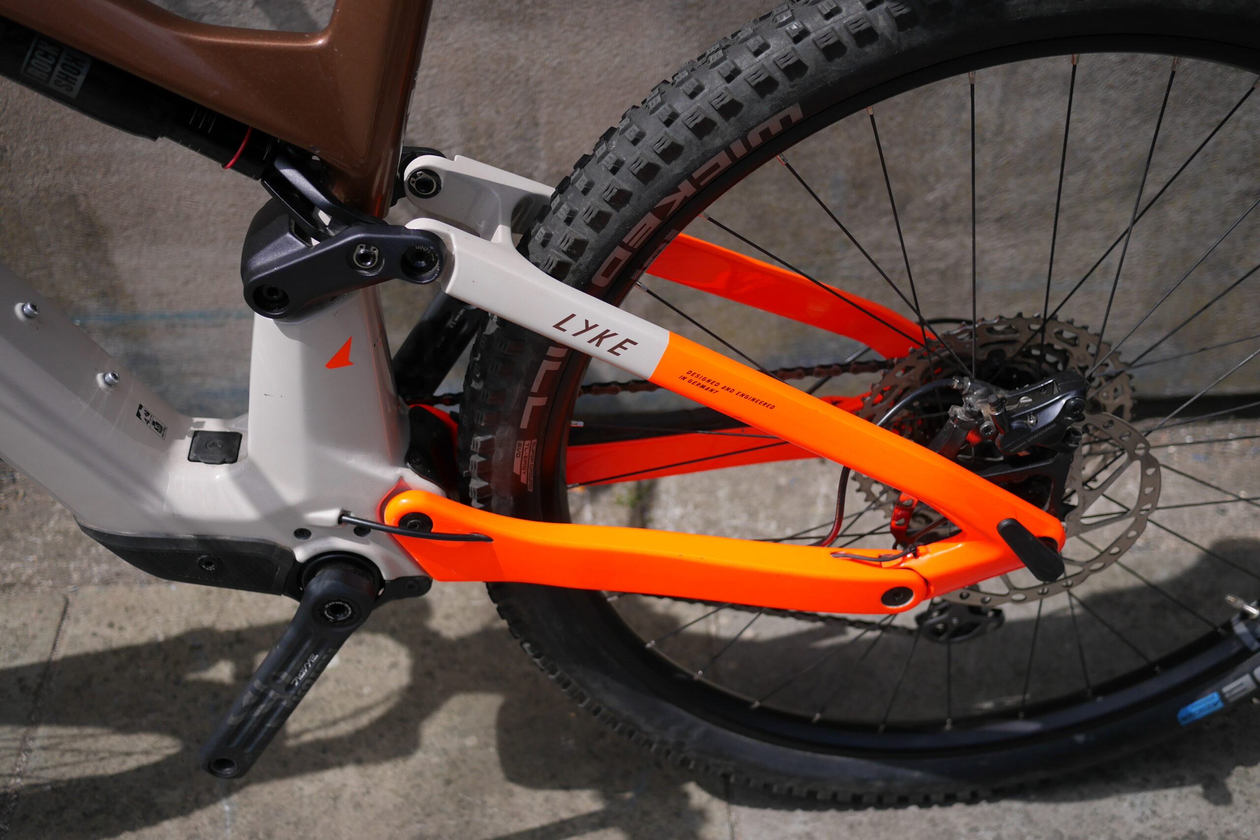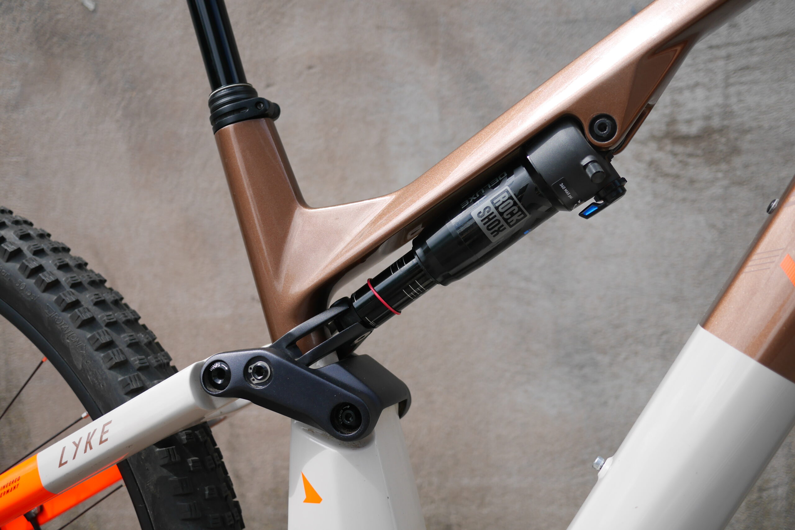 The rear shock is a lengthy-of-stroke 200×57.5mm affair that is actuated by an ostensibly trad 4-bar Horst Link rear frame suspension design. There are not flip-chips anywhere by the way. The Lyke is not mullet-able nor angle adjusty. Which is fine by me.