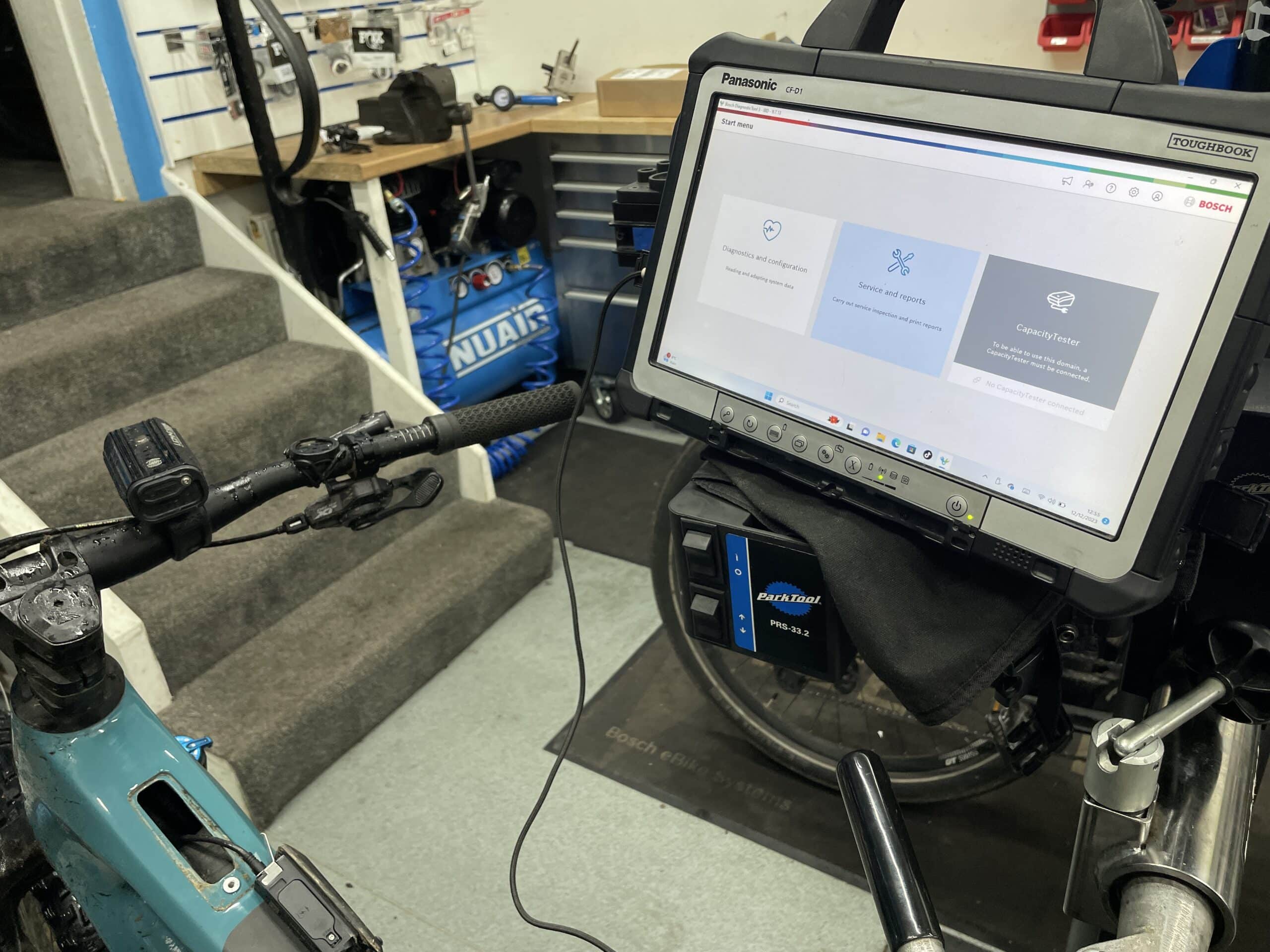 It’s the first time I’ve seen ebike aftersales service in action, and it was very much like taking a car to a dealership. The computer that gets plugged in to the bike reveals a series of screens used to diagnose issues with the various parts of the system – controllers, battery, motor. It produces a diagnostics report that can be sent off by the bike shop to Bosch for further assistance.