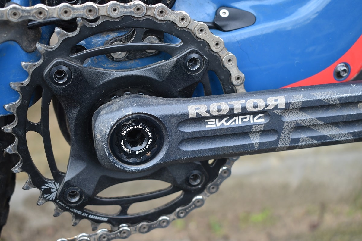 The drivetrain comprises a SRAM X01 Eagle 12 speed rear derailleur, shifter and 10-51t cassette while the cranks are a particularly smart looking ROTOR EKAPIC number with 34t ring. Braking is taken care of by Shimano XT M8120 four pot calipers paired with Galfer 180mm/203mm 6 bolt rotors.