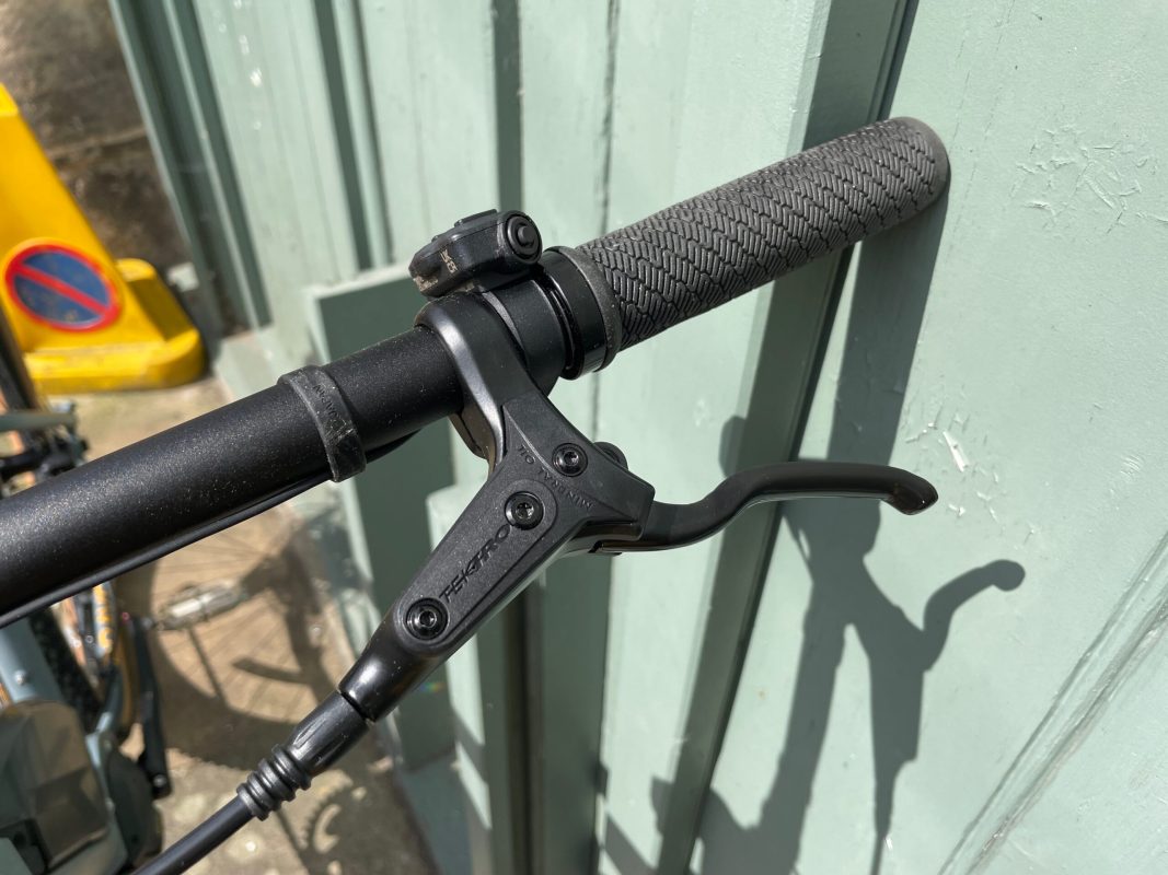 There are relatively few changes beyond the bars involved in this transformation. The frame has lost the mount to fit a kickstand – this lightens things a little, cleans the lines, and apparently few customers were using the option anyway. You now get flat bars – obviously – and with that comes flat bar brakes, in this instance the Tektro HD-M275 mated to 180mm rotors.