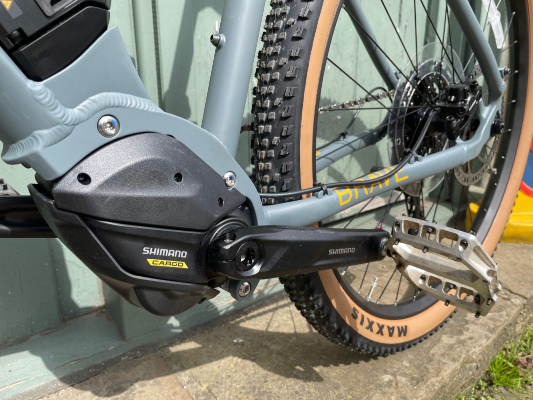 The Cairn BRAVe 2.0 comes as a fully rigid bike, although you can fit a suspension fork if you want – 80-100mm is what Cairn recommends. You can also fit a dropper post. There are oodles of mounts on the bike, making it possible to fit a variety of racks and cages according to you needs and taste. Load up you life and hit the road, or just use it for everyday life and trips to the shops – plus all the trails in between. It is a bit of a make-of-it-what-you-want bike, and the lack of suspension, good quality Shimano motor, and stacks of battery power do lend the bike towards workhorse duties. It’s great being able to commute to work, yet still have battery power left to do an evening lap of the trails without having to find the time – and power point – to fit in a recharge.