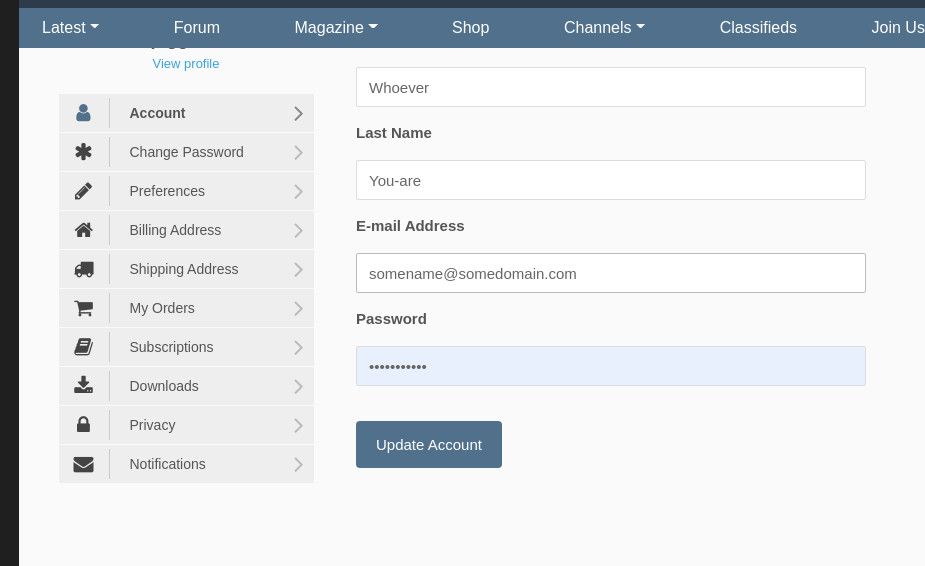 You can update your address from your account page. If you have a print membership we will send out your magazine to the shipping address. Make sure this is correct and keep the checkbox ticked at the bottom of the address form so that we update the addresses on your memberships. You have two addresses – shipping and billing so keep these up-to-date or your ex-flatmates will get your magazine instead of you!