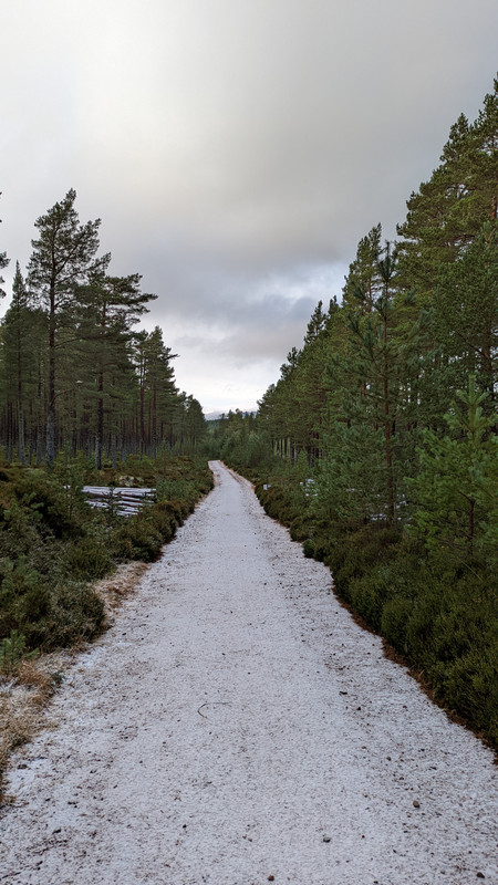 I had high hopes of finishing this on a bit of an epic. However, I was feeling somewhat beaten by a rather desultory late-evening Zwift session last night and then today started with some frozen rain so I scaled back my ambitions a little. INstead, I set off for a 11km run round the Loch Morlich/Glenmore area. The pace was a bit slow - It was about 80% running, 15% walking round frozen patches and 5% modern dance as I slipped and slid.