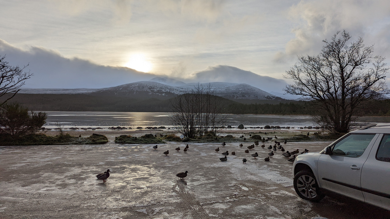 Friday started with a dip in Loch Vaa. We've reached that point where air temperature is lower than water temperature but it doesn't feel like that when you're walking into a partially frozen loch!