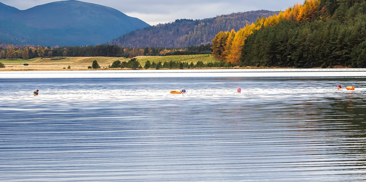 Morning swim at Loch Pityoulish. Water temperature 8-9C and my first outing without a wetsuit this season. Stayed in for 13 minutes which was maybe a wee bit too much as I had some proper shakes afterwards. Water was lovely though - incredibly calm and with fantastic autumnal reflections.