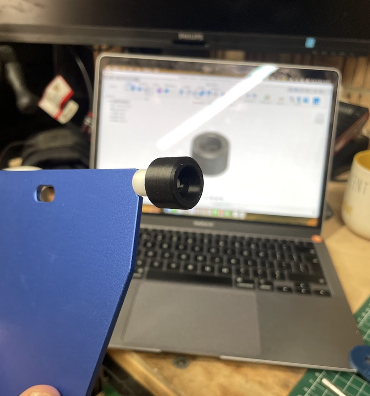 A mudguard spacer/adapter for my D'Fender so i can do away with the stupid little bumpers supplied with it that fall out and disappear for fun. It also sits it at the right angle to give just enough tyre clearance and has a nice locating lug built in which engages into the lightening holes on the back of the 36 to keep it centred and make sure it goes on in the same place every time. I'm quite pleased with it. Even if it is dead simple and of no use to almost anyone else.