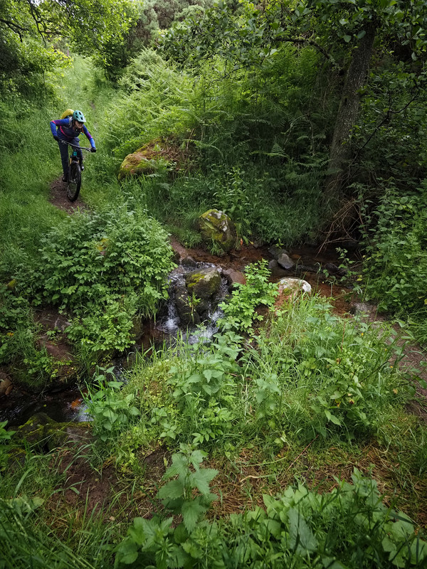 before back roads brought us to Maxton Kirk and the fun began following the Tweed. Quite challenging but well built trails hugging the cliffs and banks with some impressive woodwork features (not the jumpy type).
