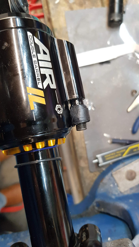 But I completely forgot there was no air in the shock so it went staight to bottomed out and of course the pump hose interferes with the shock body and properly twisted the valve stem!
