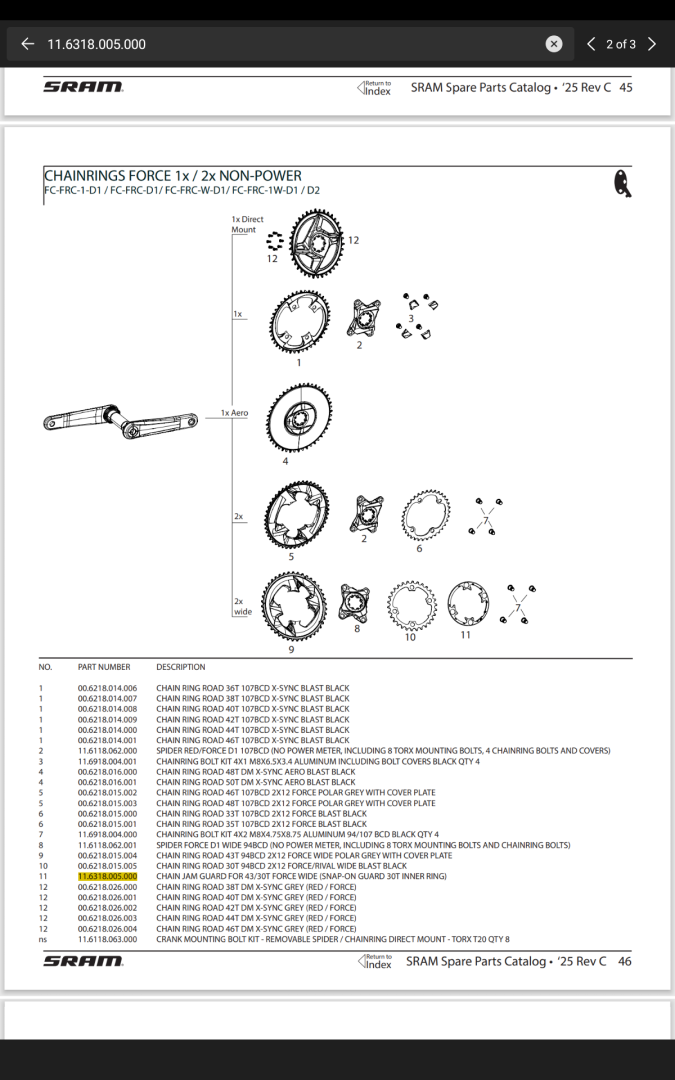 (c) Confirm which exact crankset it is (Giant say "SRAM Force Dub D1 30/43" - those numbers refer to chainring size - whereas SRAM tech support [who I sent the photo below to] say it's SRAM Force AXS D2)