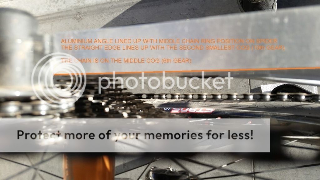 Then, I used 4mm spacers on the inner chain ring position, which lined up the chain ring within 1mm of the middle rear cog on the cassette.
