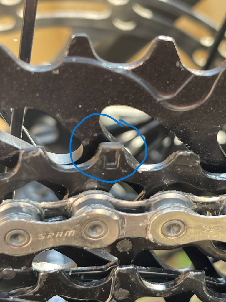 it can’t be hanger/mech as it was perfect on the NX cassette and it’s not perfect now. Bike hasn’t been anywhere in between. Also, if I move the chain along 1 link when it’s sitting correctly without turning the cranks or anything, it sits incorrectly as per the pic. The problem with that is that it does it occasionally while shifting into those larger cogs. There is a review on Bike Radar that has a quote from a SRAM guy which says the reason they had to go 52 teeth on the larger one rather than 51 like Shimano was because of the narrow wide on the top two cogs.. so my guess is that the ramps aren’t catching in the right place for some reason. Definitely the top two have indents in the teeth every so often that push a bit out the other side which makes them wider for sure looking at it.
