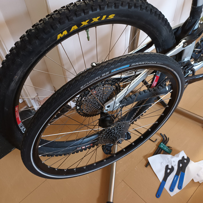 Second one yesterday on the Kenevo - could get it shifting ok at the bottom of the cassette (after a fair bit of swearing), but it wouldn't index properly at the top. Get it set up at the top, it wouldn't work at the bottom.