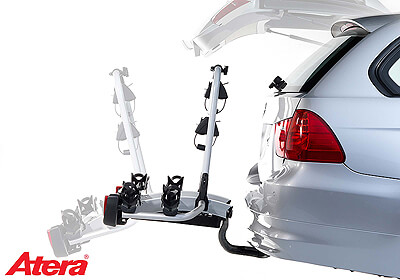 i have a two-bike atera... can't comment on the exact car tailgate combo you are talking about, or the difference between the 2 bike and 3 bike rack, but the version i have slides out of the way to allow the tailgate to open. have to do it when mountainbikes are racked, but obviously not when the road bikes are on there... 59 plate mondeo hatch, btw.