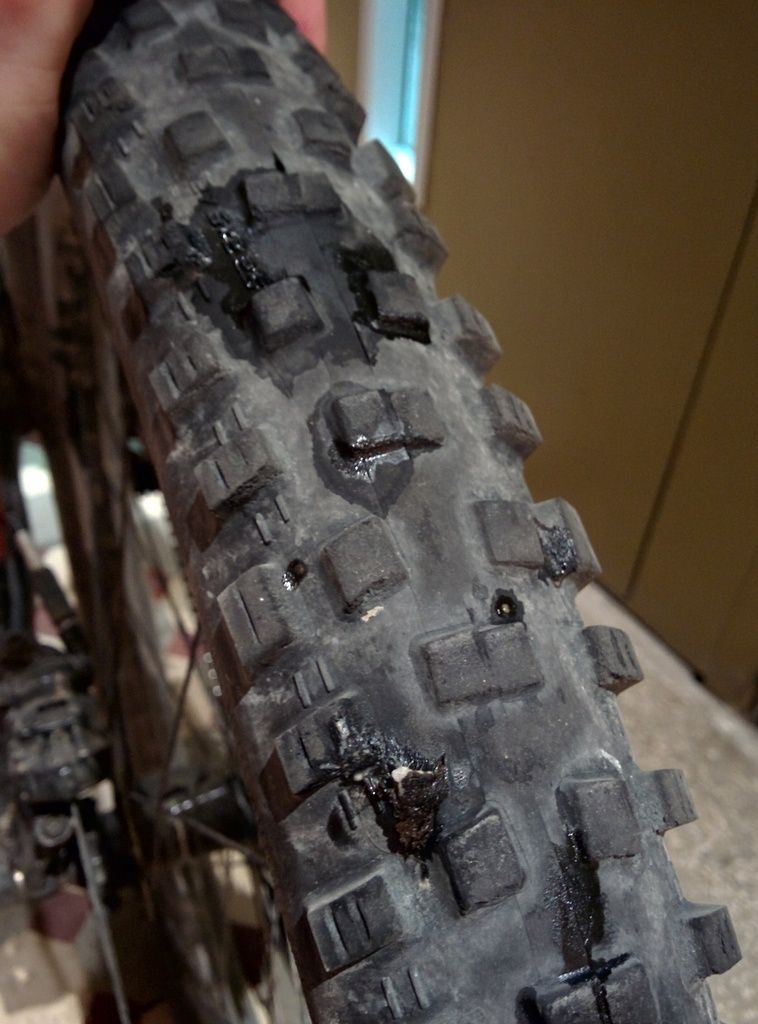 The rear tubeless Nobby Nic on my Giant Trance blew out today about ten minutes after pumping it. Doesn't seem to like pressure any more.. I have had it for one year and about 4,000km.