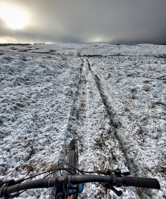 Couldn't see a thread. We went out before the temps were due to rise. It was blooming cold especially on the tops. Roads were bonkers icy as well. Ended up being out five and half hours, 1200m of climbing, 40km riding out from Ross to the the Forest. Brilliant fun on the (slippy, snowy, muddy, icy) trails, bit of a deathmarch out and back.