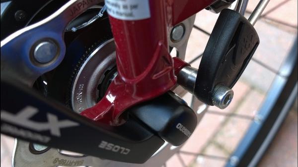 V-brake nuts make tidy spacers for making mudguards work with disc calipers.