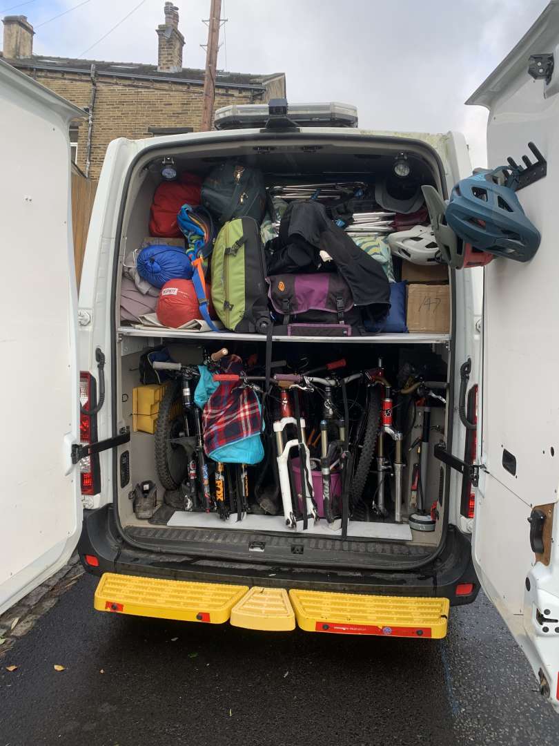 Not my picture, but this is what I’ve gone for now. I did have the brackets on a shelf/bench at the bulkhead end, but with e-bikes it was a ballache to get them up and in. This way I can back them in with easy and when I don’t want the bike mounts in there I can just lift the heavy and wide scaffold plank out and stand against the garage wall (I sometimes need to use my van for van things and not bike things).