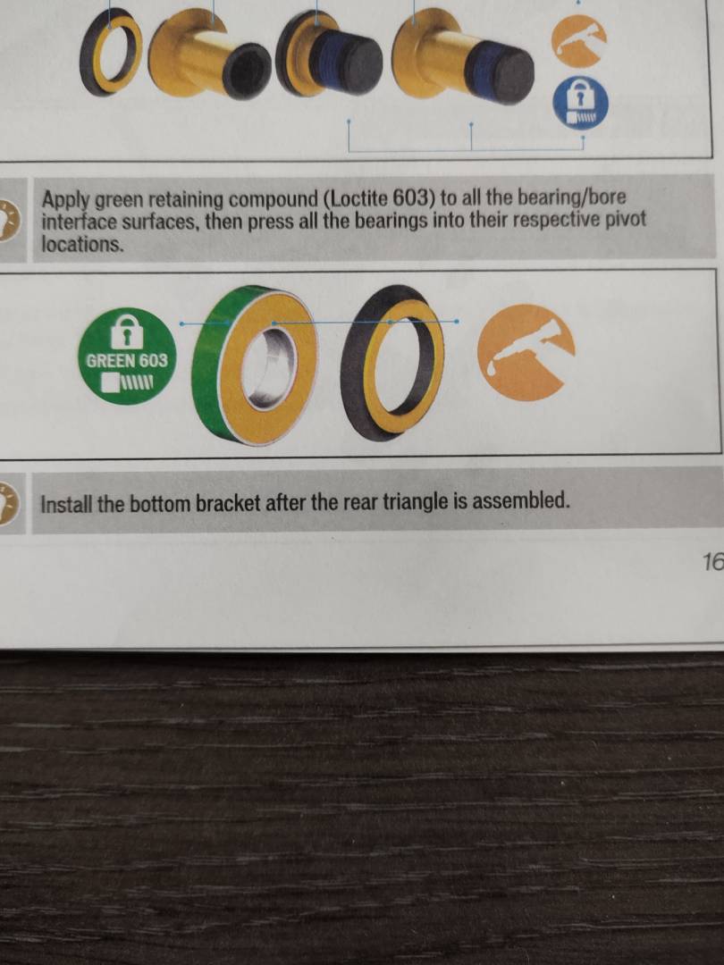 Pivot recommends green loctite for my Mach 5.5 too. Guess it’s manufacturer dependent