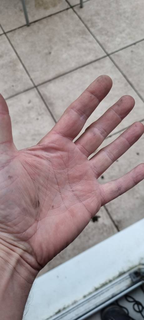 Just spent 15 mins trying to bend my cassette back into shape. Had to remove the mech, and refitting it is a bit of a pain these days with the spring tension and whatnot so I had to grab it firmly, handling the mech, cage and chain very robustly, and the cassette beforehand. The bike has been no more than briefly hosed down between rides since I got it in June. This is what my hands look like: