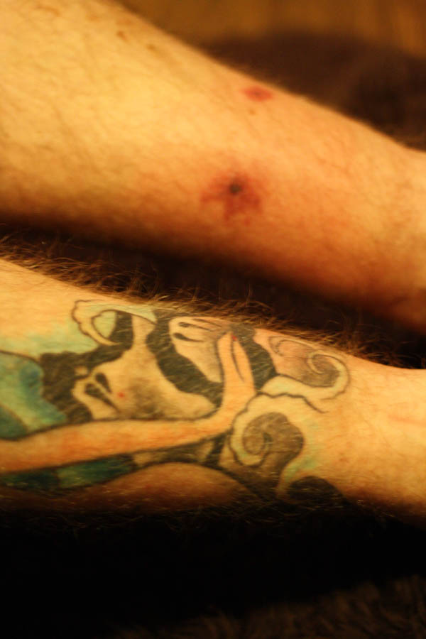 I react pretty badly, that was two days in, my legs went purpley blue after that and swelled up some more. I hate the little bastard things.