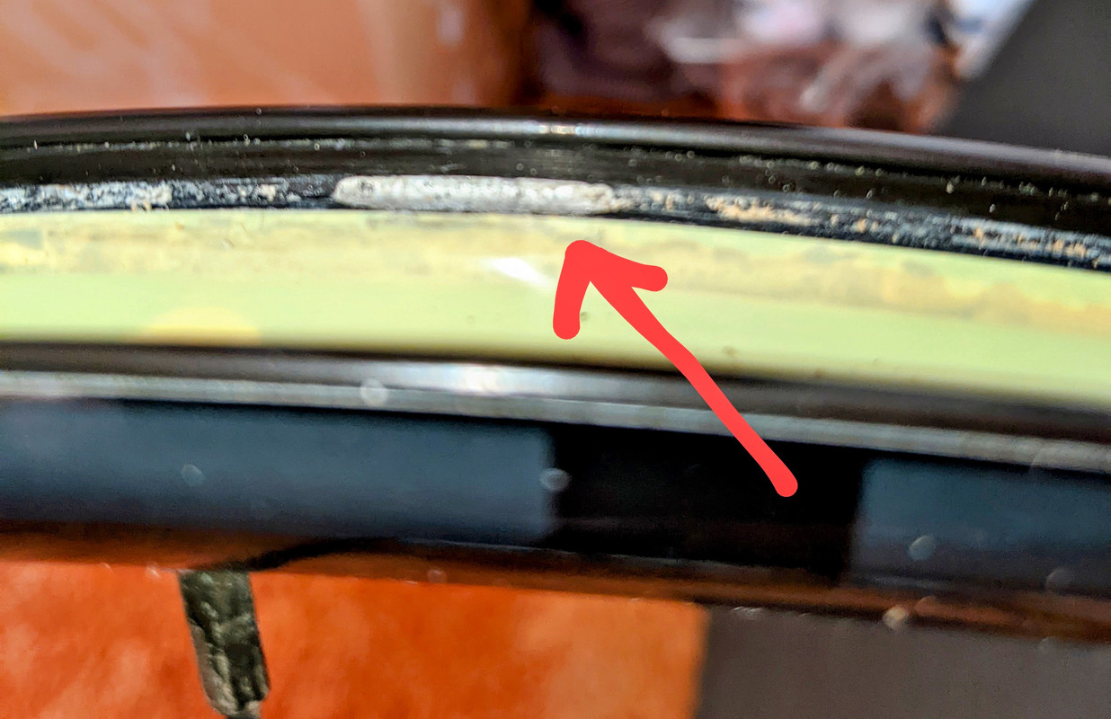 After cleaning most of the latex out of the bead seat there are a fair few corrosion marks around both rims. Not deep at all but you can feel them with your finger nail. Pic is of the biggest one. Ammonia free sealant but these things happen I guess.