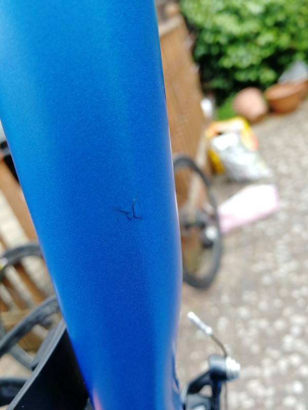I noticed the cracked frame just after I did Etape Du Dales in May - full of long fast descents - I'm quite relieved it all held up for that ride!