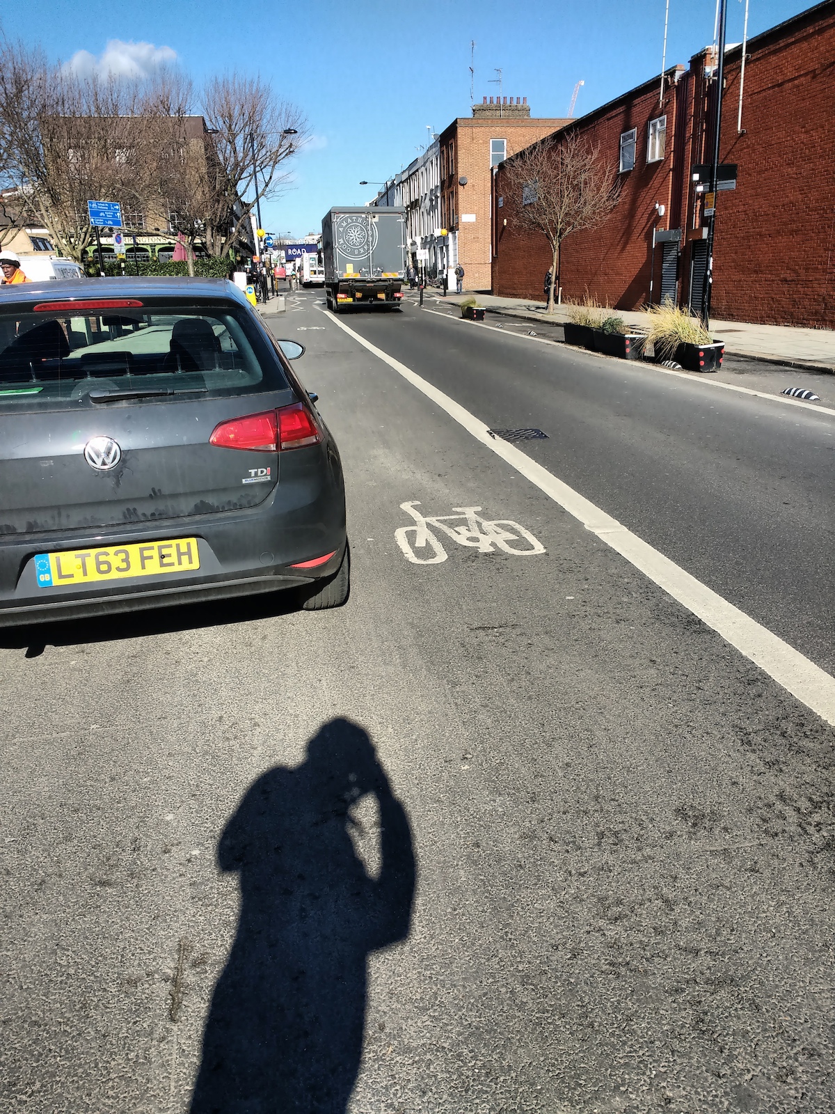 I thought a solid white line marking the cycle lane meant cars couldnt ever drive into it but for a large part of my commute the signs say they can actually park up