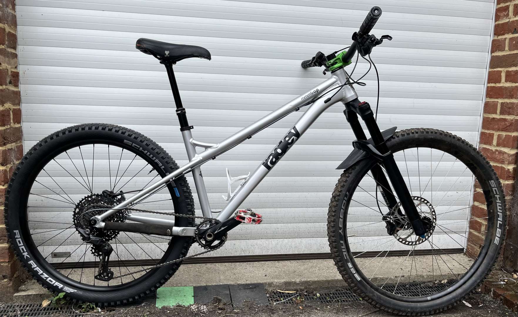 Not its final state but rideable, quick spin round the block and it’s not bad, currently stuck with a 160mm rear rotor till some longer bolts arrive seems comfortable climbing. Wheel flop is significant until I weight the front a bit, but the fork is maybe set a smidge stiff and not quite sagging properly since I reduced the travel to 140mm.