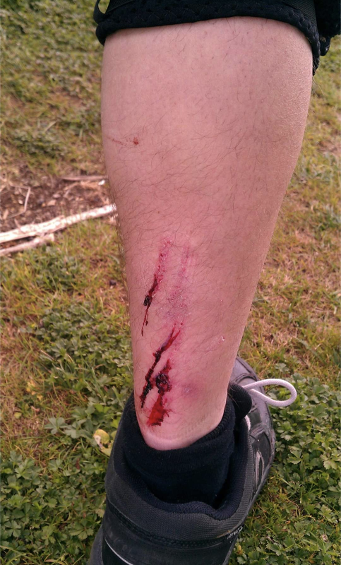 Last year it wasn't my shins, but my calf that suffered from flat pedal pins with a lovely de-gloving injury after playing silly buggers with one of the guides (Pat) in the Alps on a wet and slippy day.