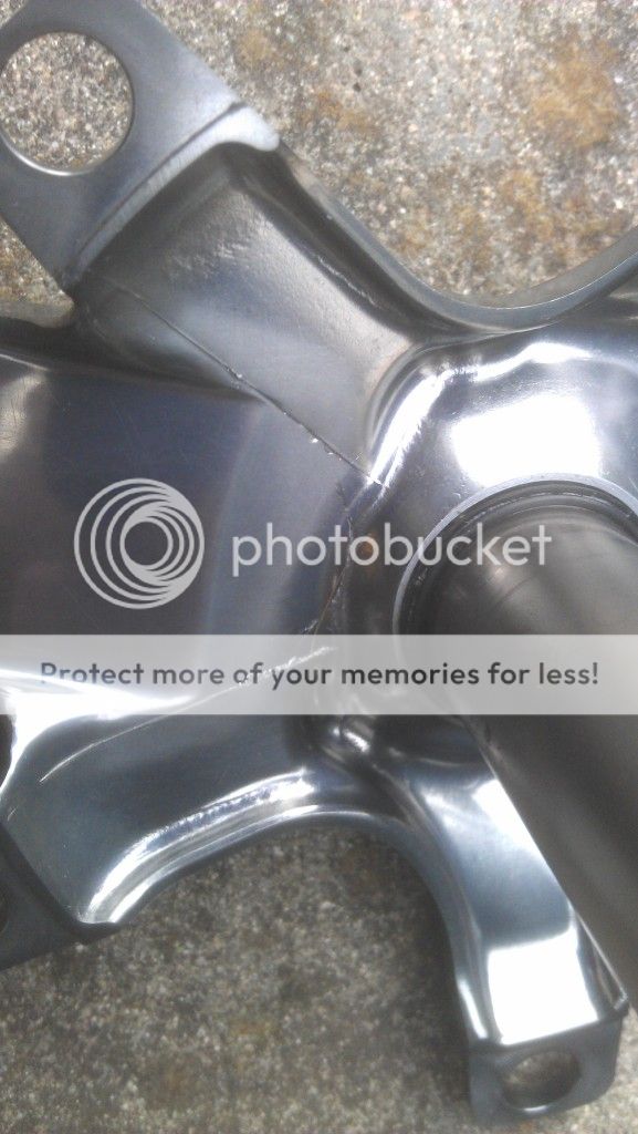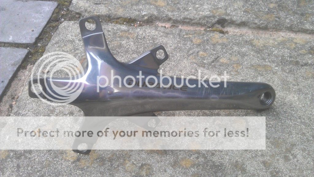 Just been cleaning my Dura ace crank arms ready for a new build and noticed this fine line/ crack? It curves out near the axle and looks like a score mark.Just worried it is a crack but there is plenty of material round the arm itself.Could just be a mark from bb cup maybe? Anyone seen anything like this before?