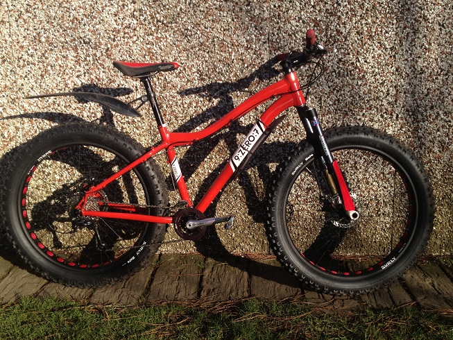 So the bike one one fatty, I've not ridden anything like this before and I picked it up on here a week or so ago once together it looks very nice seems to just look right only complaint as this is my second on one bike the Avid brakesare just poor im not gonna blame the seller as not only is this my second on one!its my third set of avid elixirs and they are crap every set have needed bleeding with in a few rides and these where the same,lever straight back to the bars very poor!!