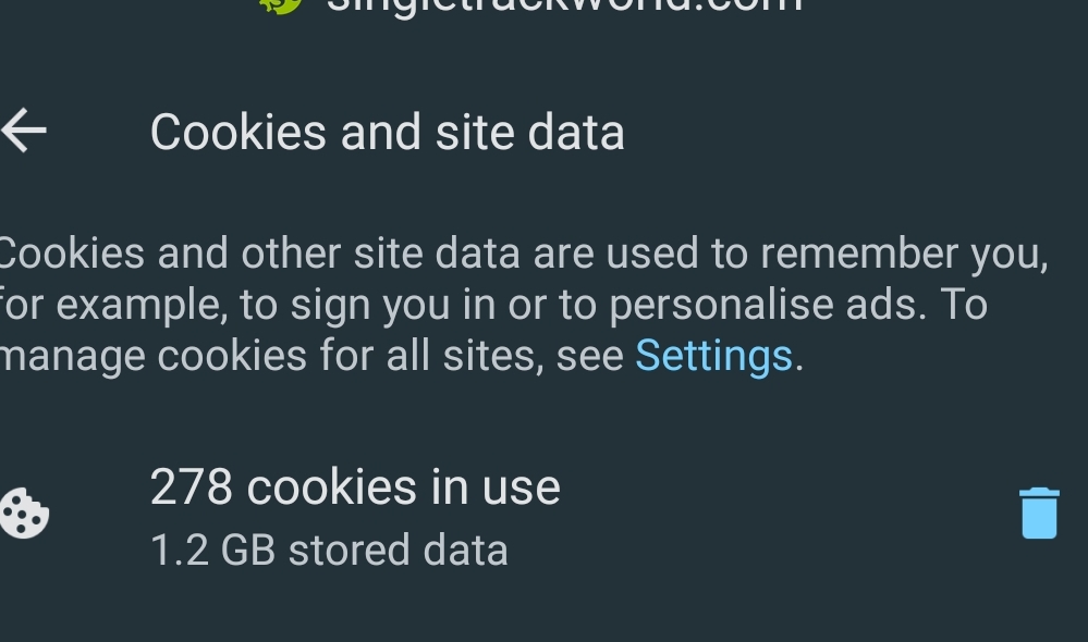 Same here, chrome on a Pixel 6. 1.4GB of cookies that pretty much reload after clearing and using the site a few times. Chrome on my PC is showing as 2.7GB!