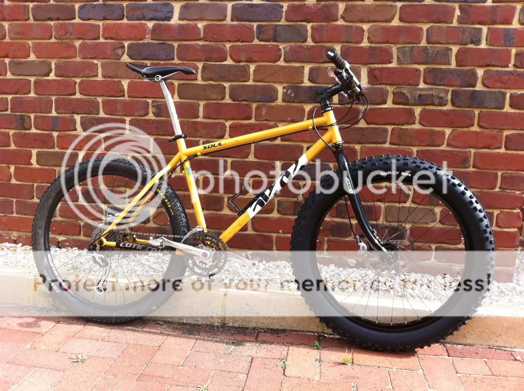Since getting an Intense Tracer I've had a BFe frame sitting neglected in a box. I don't want to build it back up as I had it previously, bit of a long travel hardtail type bike as I have the Tracer for that sort of stuff now. I'm considering turning it into a half fat with an upside down short travel fork on the front of it too. If it's a bit different to my full sus then I'm more likely to ride it.