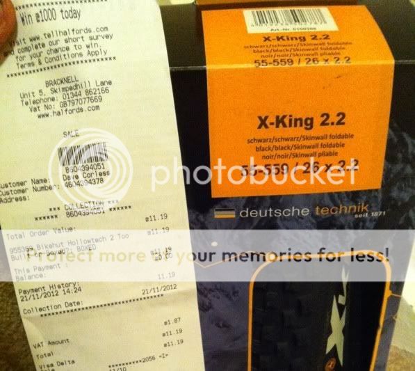 Now my planned tinkering time this eve will have to be placed on hold as I am pretty sure I cannot undo my bottom bracket with a x king tyre!!!!!!