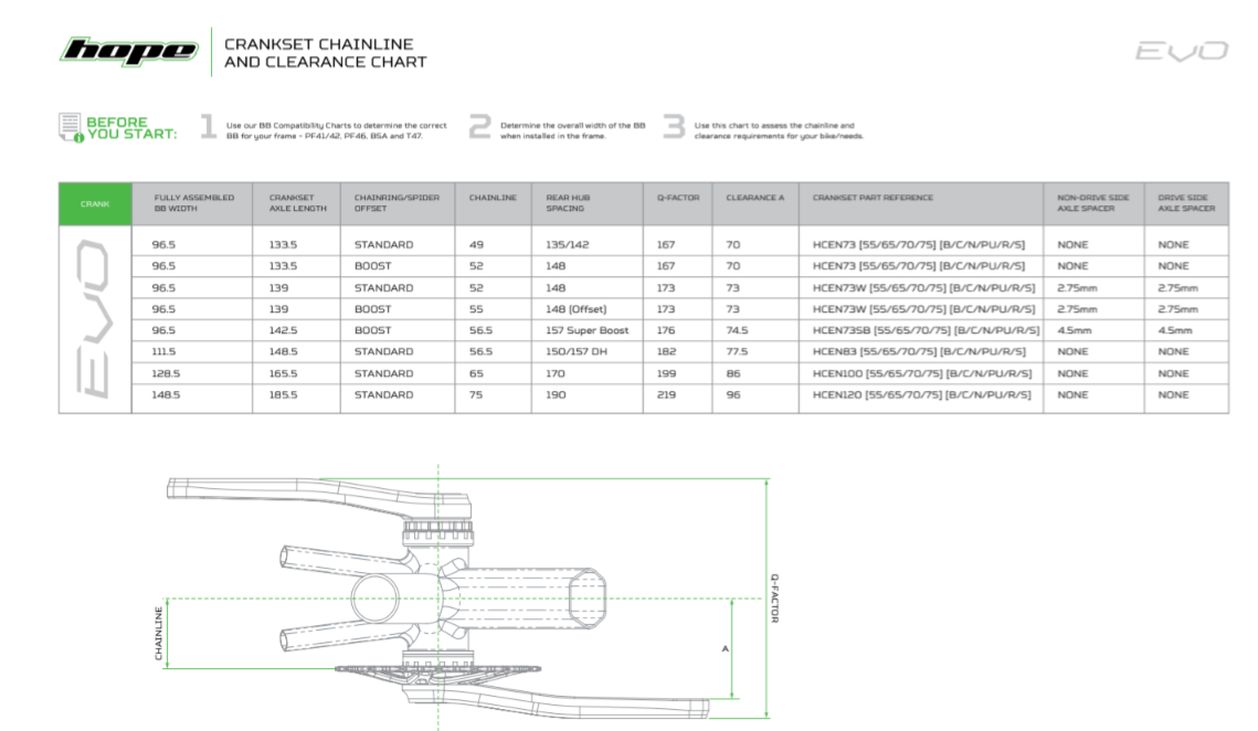I'm looking to fit a Hope evo crank on a bike that currently uses a 52mm chainline but may at some point require a 55mm chainline.