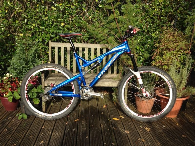 Now, candy blue, fox 36 rc2 instead of 09 pikes, 1x10 instead of 3x9, front end wider and stem shorter, hope m4 brakes, new back wheel and all bearings / bb / hs replaced