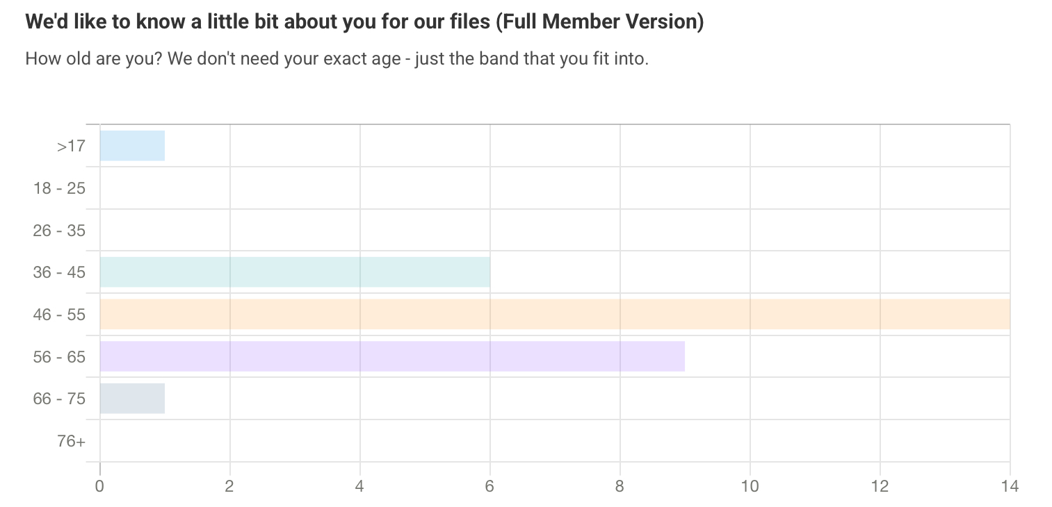 Of course the challenge is self-selection bias: the figures represent the old gits who remember when this forum was all just fields, and are engaged enough to read the thread and want to answer. Still interesting though!