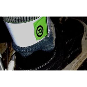Proper Scotchlite reflective, and when moving you are [i]clearly [/i] a cyclist, as the pedaling motion is so obvious. (Oh, and yes, that is my finely honed ankle modelling in the picture!)