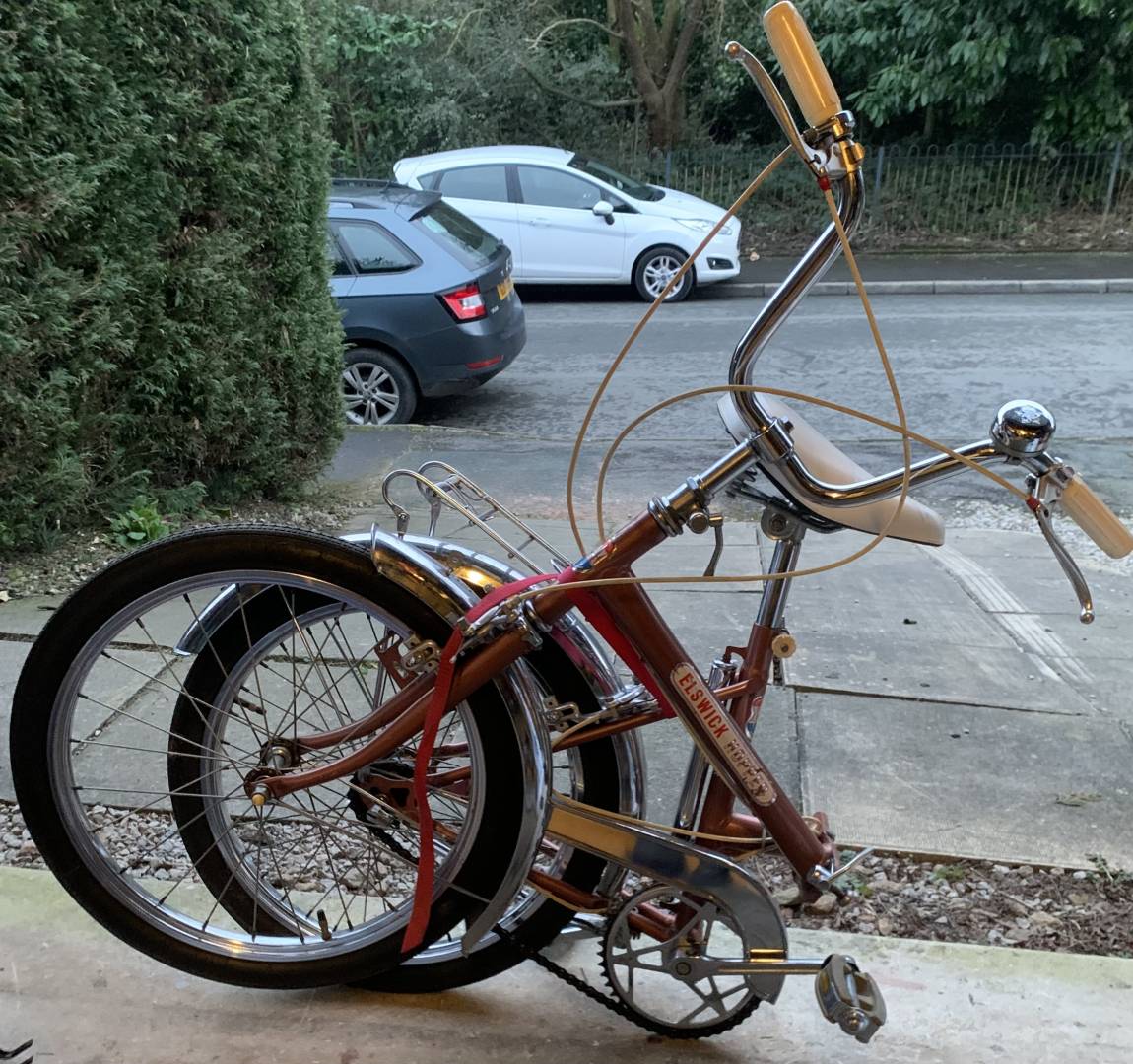 I have an old Elswick Hopper folder. It’s in really good Nick and I’ve got a hankering to use it on train trips. I don’t want to change stuff on it - better brakes, bars, tyres etc etc - what I want to do it to make it easier to lug about when it’s folded. I’m thinking about getting some cheapo folding pedals off eBay to make it a bit slimmer. I’ve got a strap to hold it in position when folded. I want to make a small ‘dolly’ to wheel it about on. Small enough that it can go on the rack when ridden. I’ll be using either a skateboard truck or some castors.