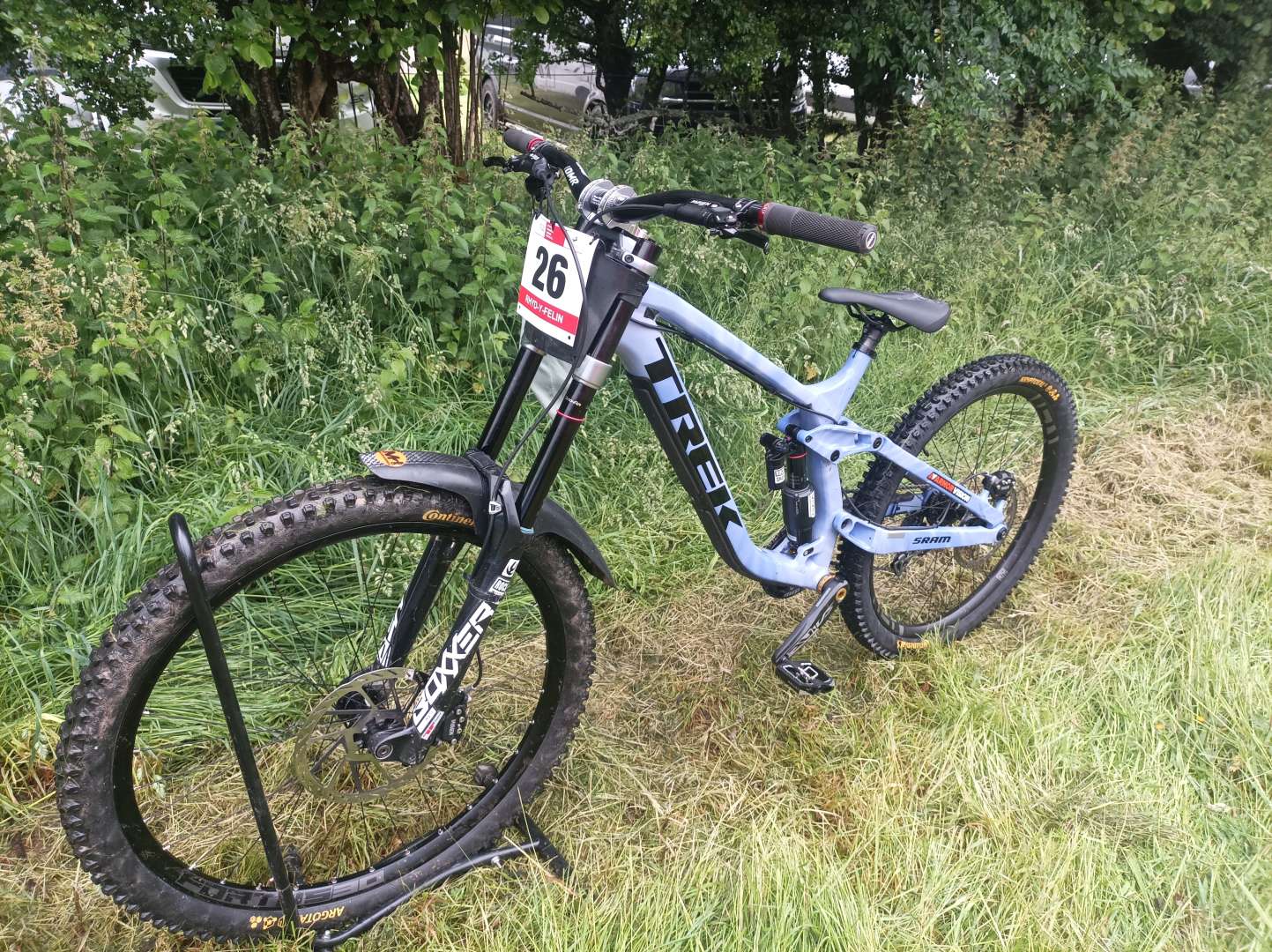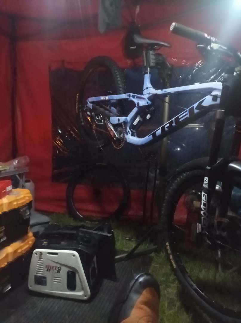 His practice reports were mostly "don't aske me, i'm just hanging on and hoping for the best", along with "feels the same really", but how a frame 30mm reach more can feel the same is beyond me. Funnily though a paddock mate of ours was also on a next size up Mondraker they'd never sat on before and apparently that felt the same too 😀