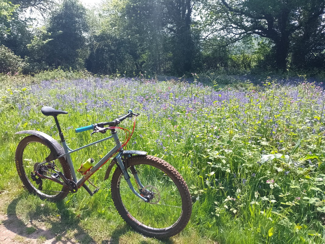 I got mrs_oab back on her mountain bike after a long layoff it. Local loop, lovely familiar trails, bluebells and smiles.
