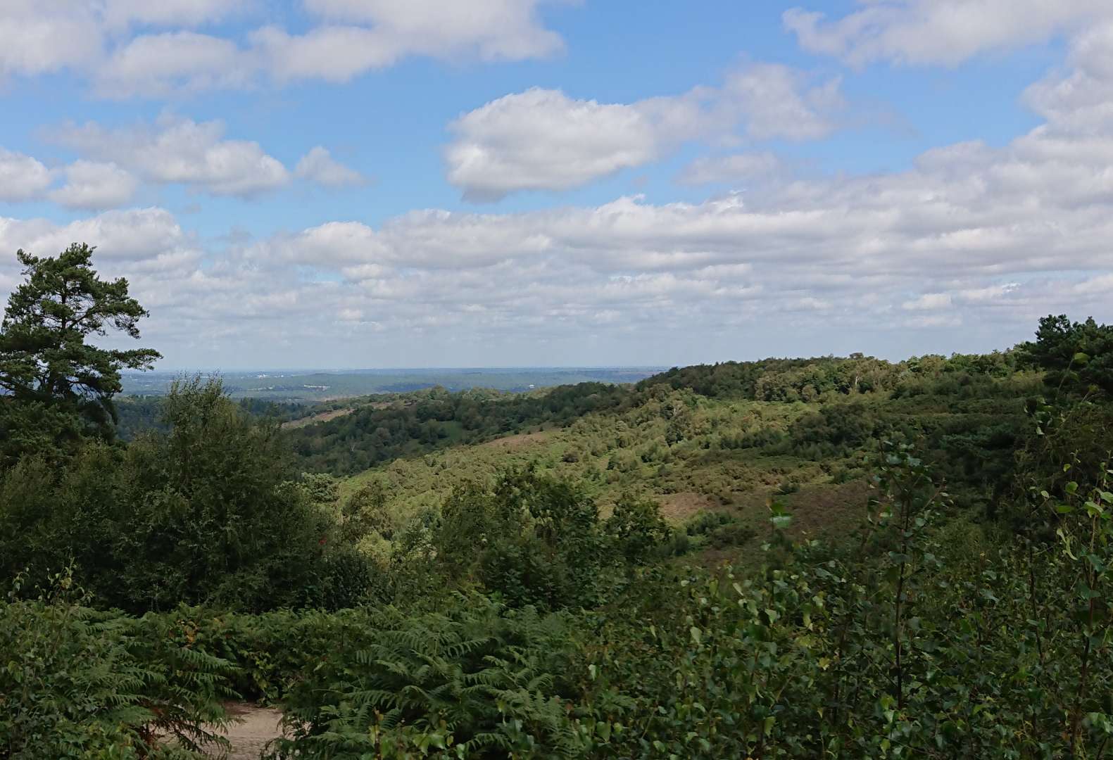 From Hindhead looking south with the South Downs in the distance.