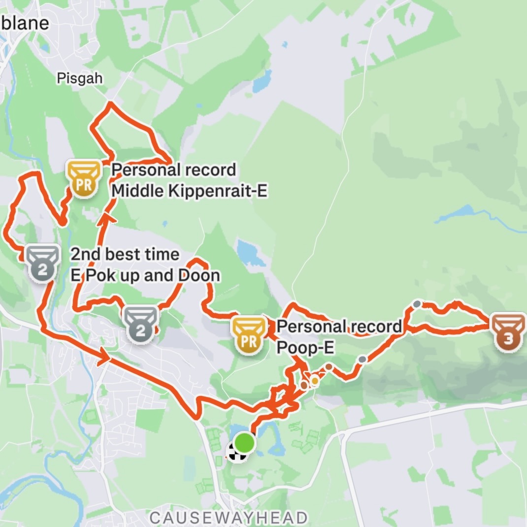 Weekend almost passed me by before a ride on Sunday evening, finishing just before the rain. 30km and 1,100m elevation in 1hr45 on the e-bike, rinsing myself in the process. Brilliant fun.