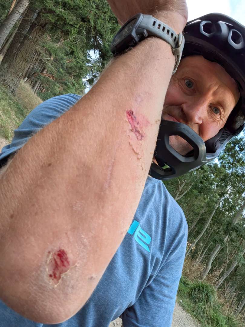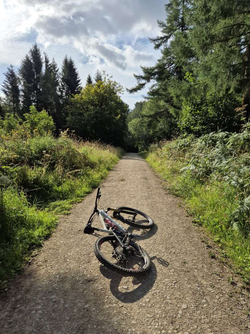 Friday evening rides post summer holidays are a thing again. Beautiful night to be out if a bit breezy, clouds of dust were being whipped up at Glentress where we had decided to go and play on the jumps and berms. Unfortunately whilst trying to avoid the braking bumps and covering of trail debris I managed to lose the front and went sliding down one of the bigger berms. Still a good night.