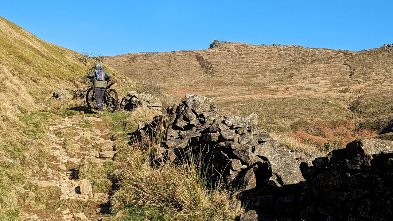 Losing an argument with the narrow bridleway down to Capel y Ffin.